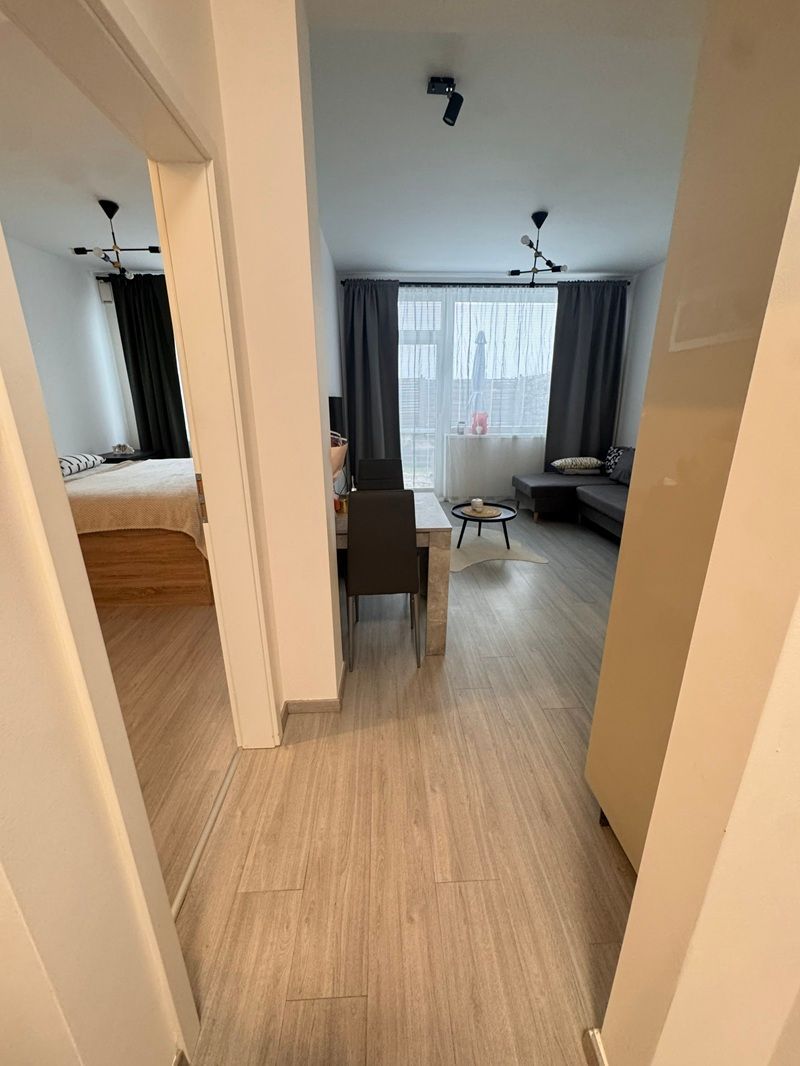 Byt o výmere 43 m² je kompletne zariadený so vstavanou kuchynskou linkou so spotrebičmi – stačí priniesť osobné veci. Moderný štýl, svetlo a komfort v každom detaile – presne tak, ako ste si vysnívali!