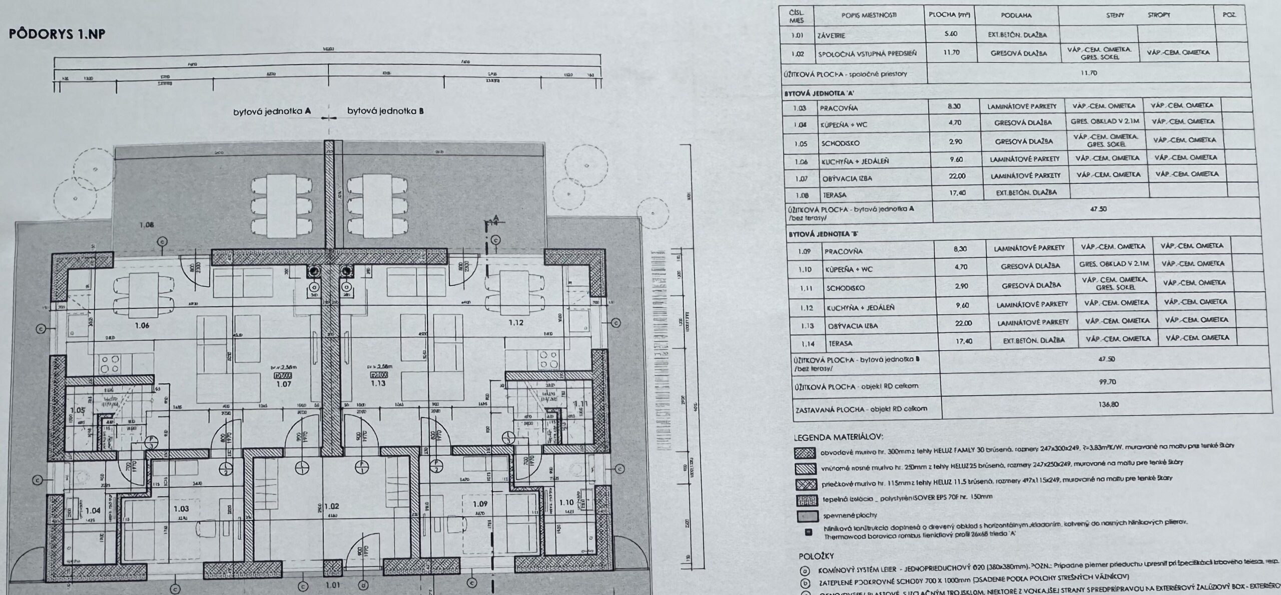 Cena jednej bytovej jednotky 259.000,-EUR v stave holodom vrátane parkovacích miest 3x, bočného a zadného oplotenia.
